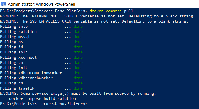 - change directory to D:\Projects\Sitecore.Demo.Platform