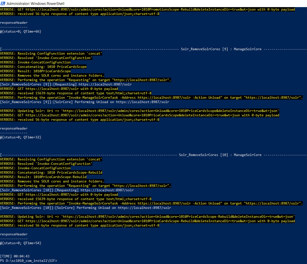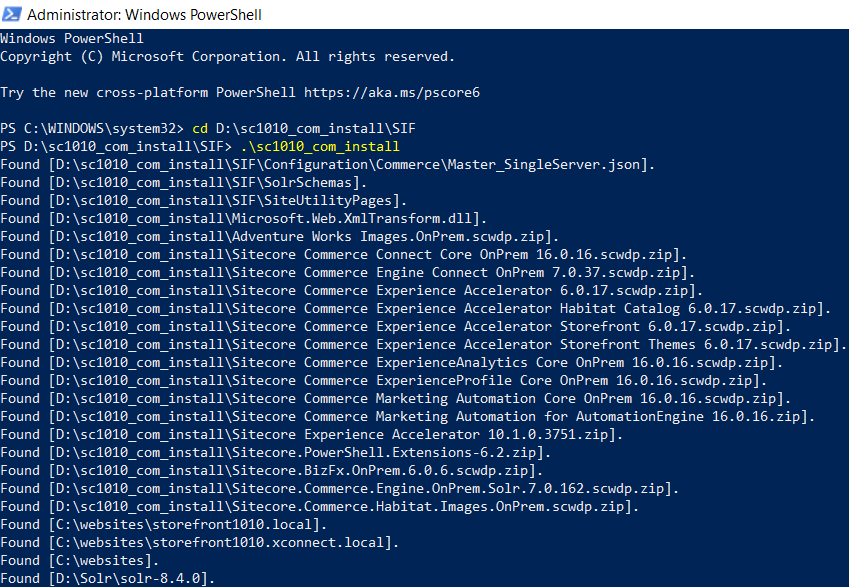 - Note: DO NOT FORGET to restore D:\sc1010_com_install\SIF\Configuration\Commerce\Master_SingleServer.json if you already edited it for removing the modules completed via the install operations