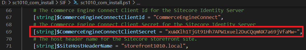 - note the generated client script and then replace the value of $CommerceEngineConnectClientSecret